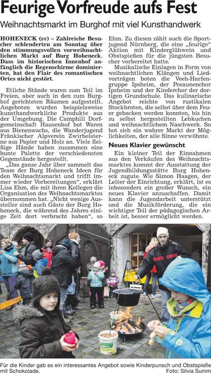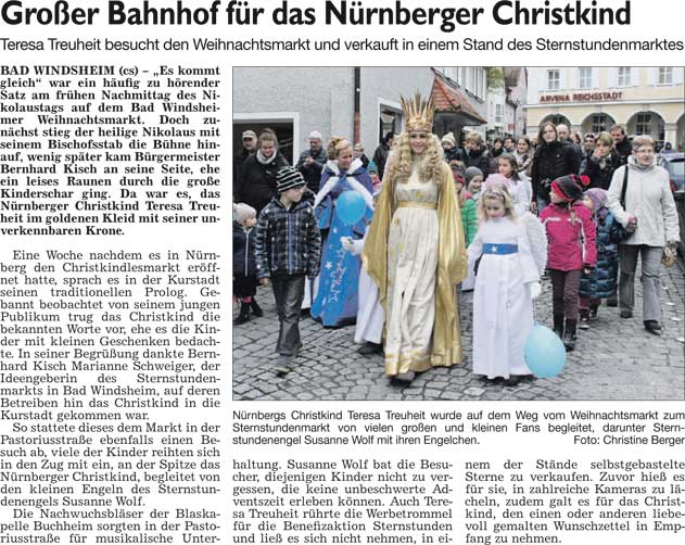 WZ 8. 12. 2014 "Brand in der Altstadt sorgt für Aufregeung", "Großer Bahnhof für das Nürnberger Christkind", "Quartett singt seit halbem Jahrhundert", " Weihnachtspäckchen für Kinder in Not"
