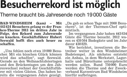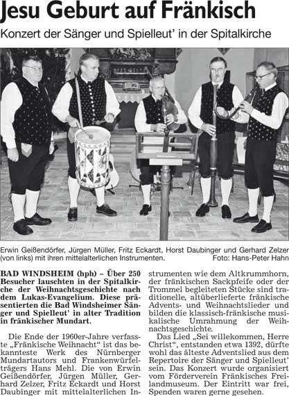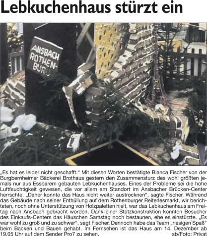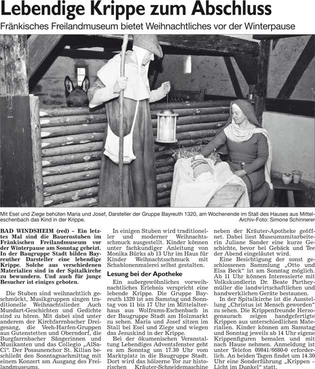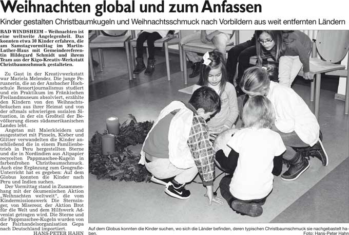 WZ 9. 12. 2014 "Lebkuchenhaus stürzt ein", "Weihnachten global und zum Anfassen", "Jesu Geburt auf Fränkisch"