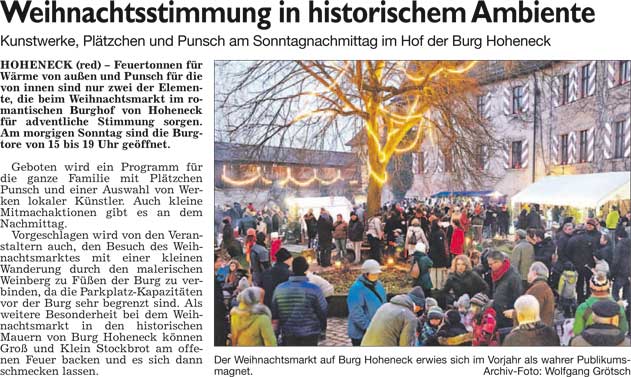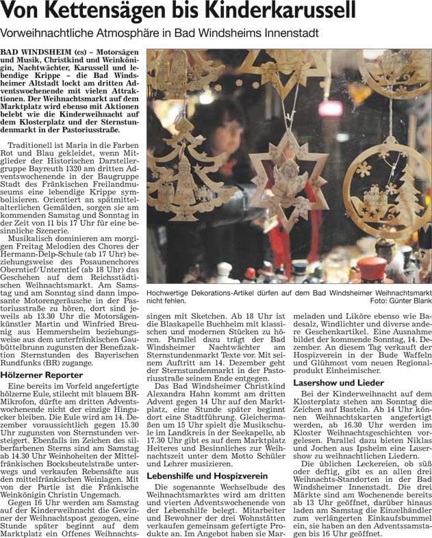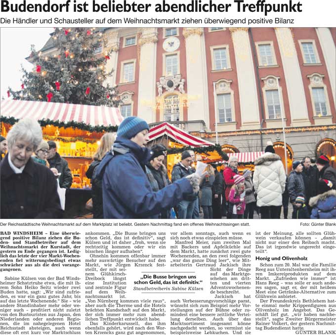 WZ 22. 12. 2014 "Besucherrekord ist möglich", "Budendorf ist beliebter abendlicher Treffpunkt", "Der Kornmarkt-Bürgermeister wird 80"