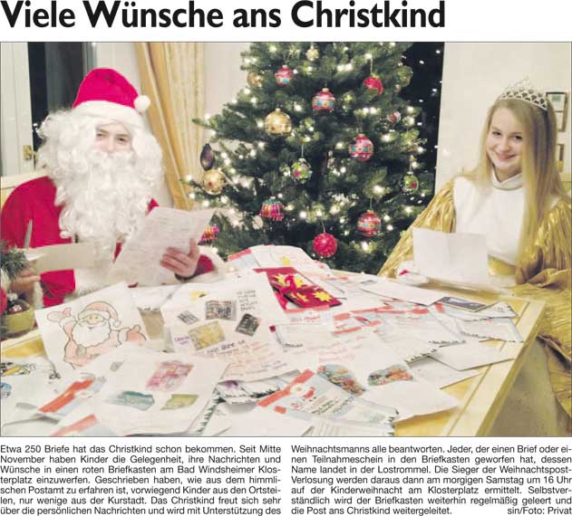 WZ 5. 12. 2014 "Christkind kommt morgen", "City Outlet bleibt eine Utopie", "Festschrift über Pastorius für das Stadtarchiv"