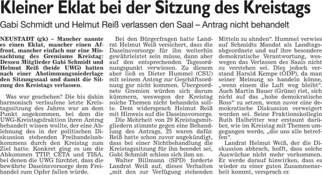 WZ 13./14. 12. 2014 "Selbstvertrauen und Perspektive für die Zukunft", "Neue Denkmäler im Kreis", "Weihnachtsstimmung im historischem Ambiente", "Kleiner Eklat bei der Sitzung des Kreistags", "Großer Einsatz für die Allgemeinheit"