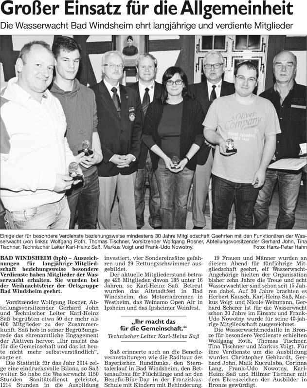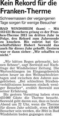 WZ 31.12.2014-01.01.2015 "550 Euro für Lebenshilfe", "Gemeindezentrum schließt die Pforten", "Neues Domizil für Sportler, Musiker und Leseratten", "Kein Rekord für die Franken-Therme", "Das Jahr in Bildern 2014"