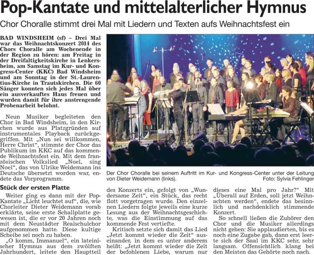 WZ 15. 12. 2014 "Drogensumpf hinter kleinbürgerlicher Fassade", "Pop-Kantate und mittelalterlicher Hymnus"