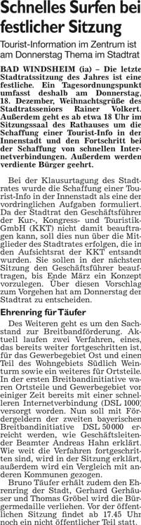 WZ 19. 12. 2014 "Einsatz für barrierefreien Bahnhof", "Miteinander die Persönlichkeit entwickeln", "Wissenswertes für Radtouristen"