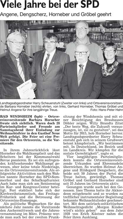 WZ 16. 12. 2014 "Feurige Vorfreude aufs Fest", "Neuer Verein soll Gewerbetreibende vereinen", "Mit der Säge geschaffen", "Schnelles Surfen bei festlicher Sitzung", "Viele Jahre bei der SPD"