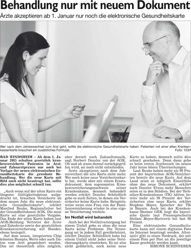 WZ 20./21. 12. 2014 "Behandlung nur mit neuem Dokument", "Mehr Platz für Technik, Mitarbeiter und Material", "Optimistischer Blick in die Zukunft"