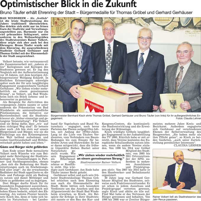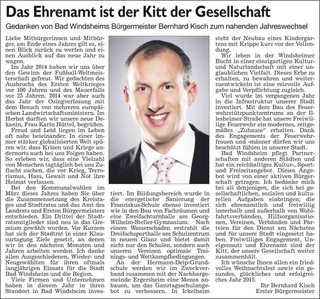 WZ 24.-26. 12. 2014 "Das Ehrenamt ist der Kitt der Gesellschaft", "Den ländlichen Raum stets im Blick"
