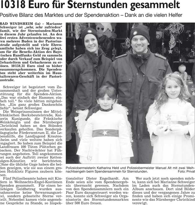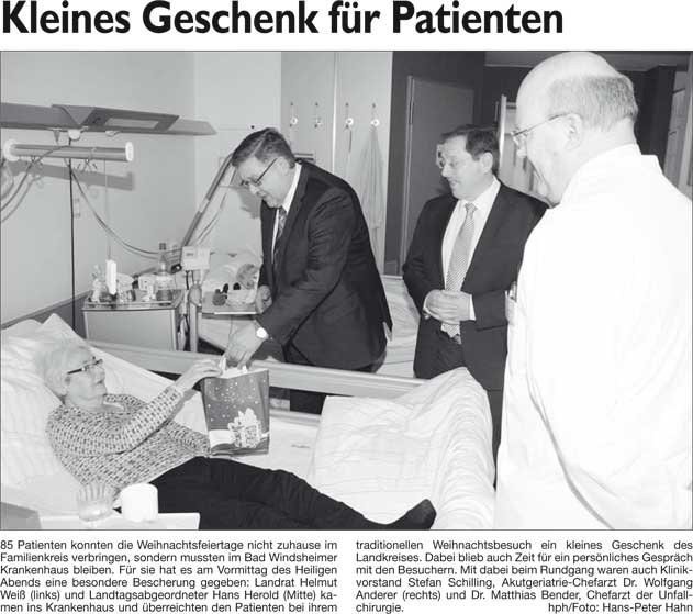 WZ 27./28. 12. 2014 "Kleines Geschenk für Patienten", "Polizei ist präsent wie nie zuvor", "10318 Euro für Sternstunden gesammelt"