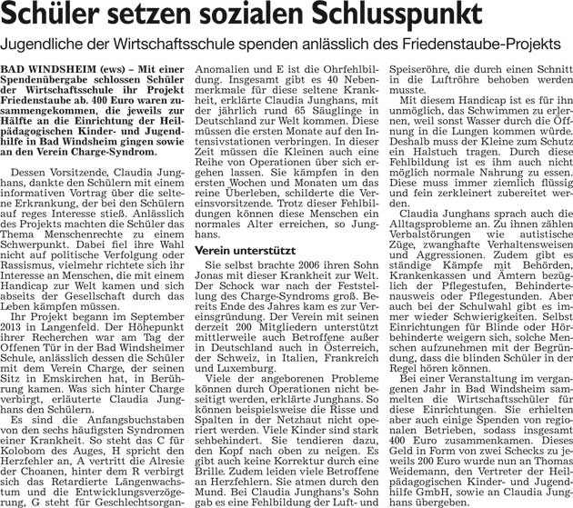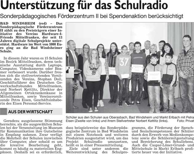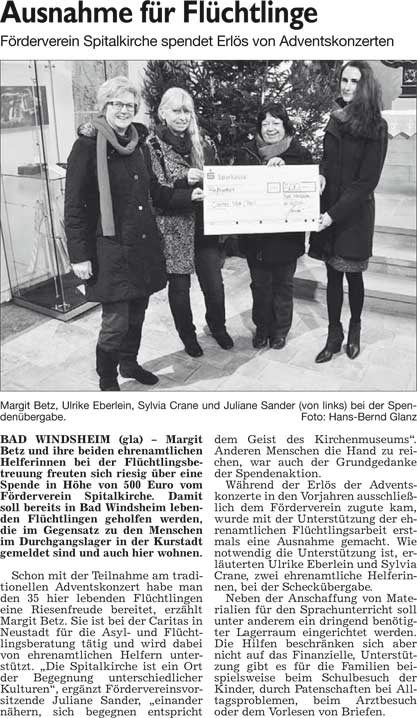 WZ 30. 12. 2014 "Ausnahme für Flüchtlinge", "An andere gedacht", "Schüler setzen sozialen Schlusspunkt", Unterstützung für das Schulradio", "Markt als erste große Aufgabe"