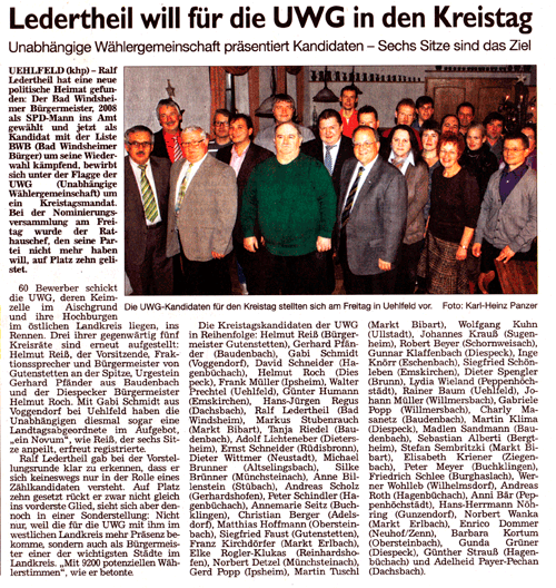WZ 16.12. 2013 "Ledertheil will für die UWG in den Kreistag"
