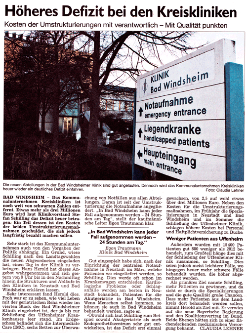 WZ 17.12. 2013 "Höheres Defizit bei den Kreiskliniken"