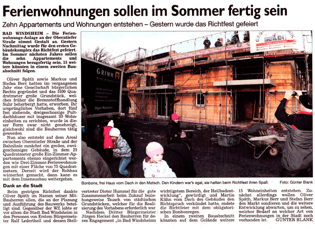 WZ 18.12. 2013 "Ferienwohnungen sollen im Sommer fertig sein", "Auslaufbereich zur Entlastung"
