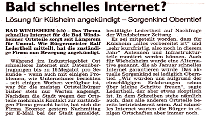 WZ 19.12. 2013 "FBald schnelles Internet?"