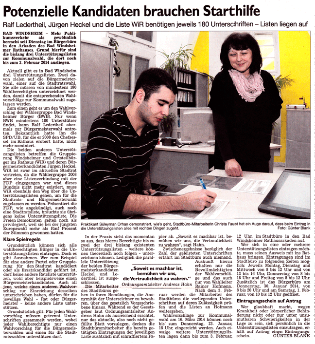 WZ 18.12. 2013 "Potenzielle Kandidaten brauchen Starthilfe", "Jetzt können Projekte angepackt werden"