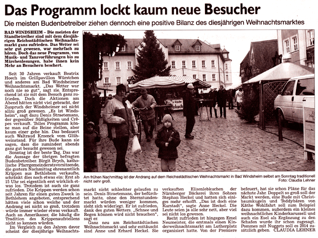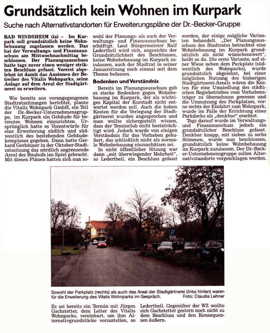 WZ 6.12. 2013 "Grundsätzlich kein Wohnen im Kurpark", "Neugier und Angebote locken viel Kunden"