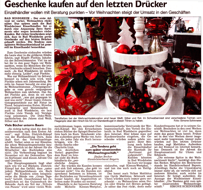 WZ 3.12. 2013 "Geschenke kaufen auf den letzten Drücker"