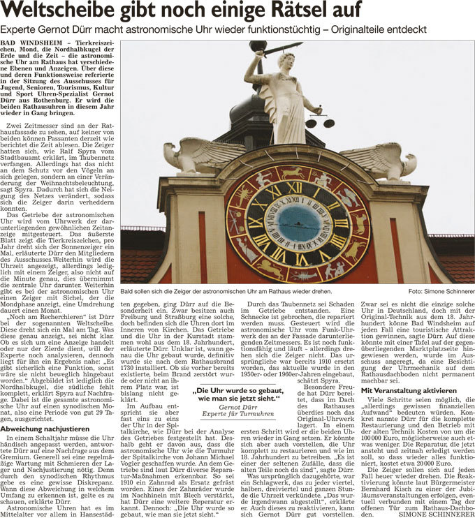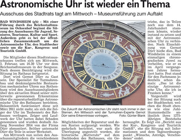 WZ 1. 2. 2016 "Im Amt bestätigt", "Astronomische Uhr ist wieder ein Thema", "Thema Umgehung", "Gößwein folgt auf Heidl", "Stadt sichert sich Vorkaufsrecht"