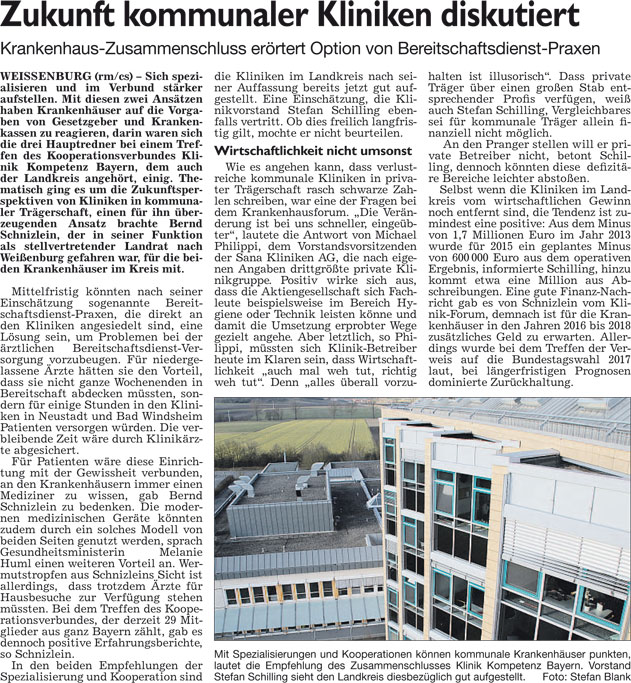 WZ 2. 2. 2016 "Zukunft kommunaler Kliniken diskutiert", "Tägliche Arbeit der Bauern wertschätzen"
