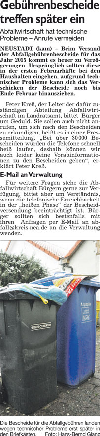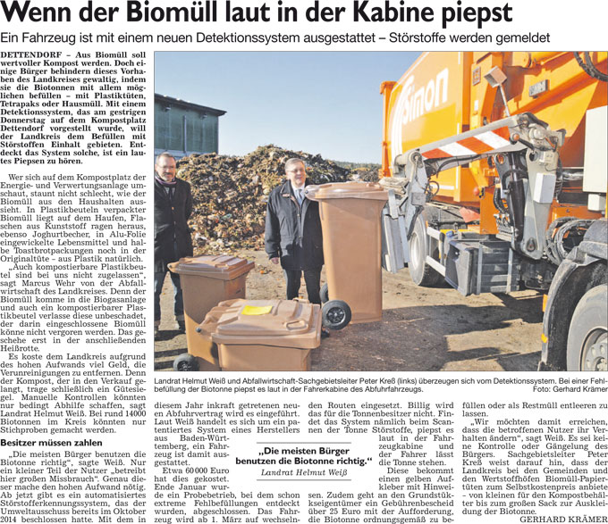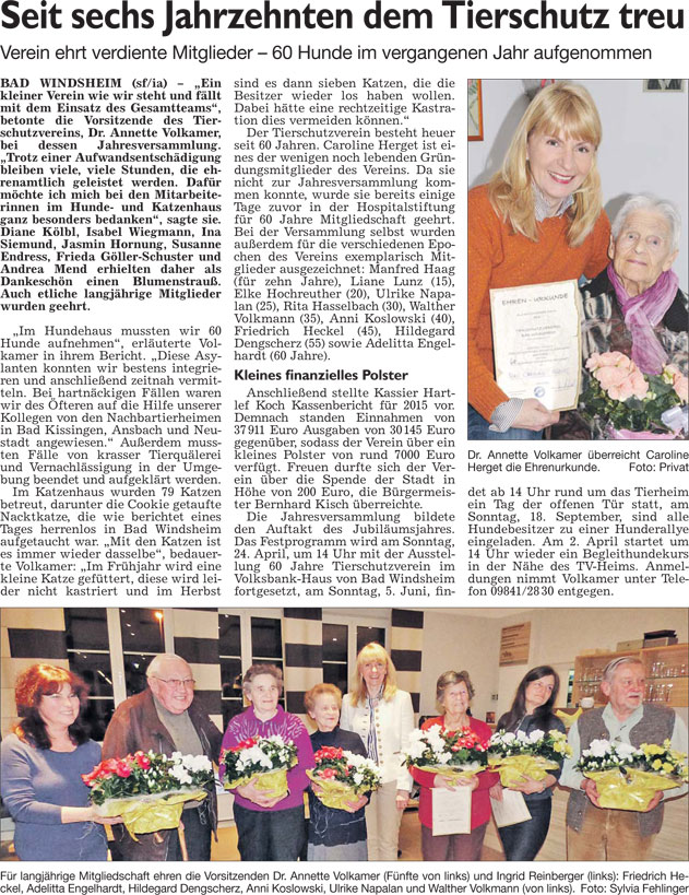 WZ 26. 2. 2016 "Wenn der Biomüll laut in der Kabine piepst", "Seit sechs Jahrzehnten dem Tierschutz treu", "Bürger sollen befragt werden"
