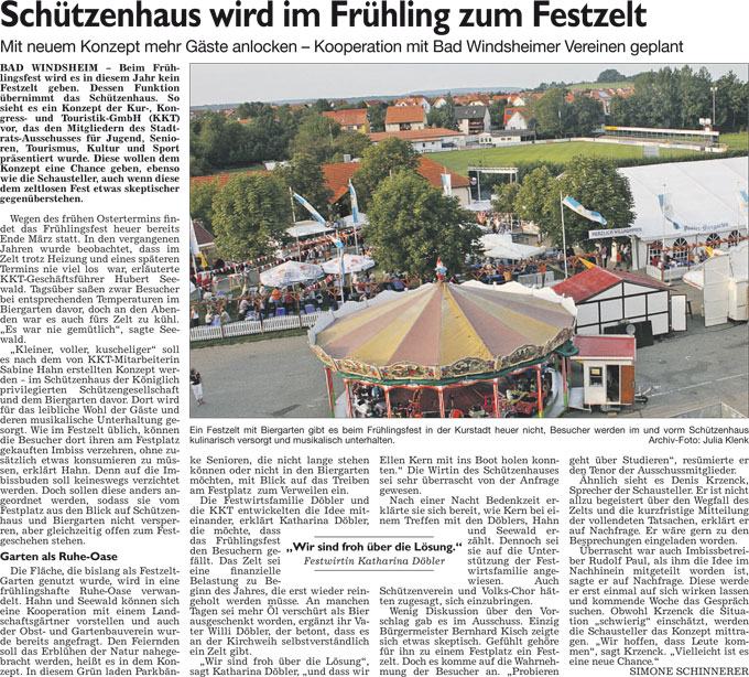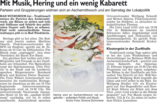 WZ 6./7. 2. 2016 "Mit Musik,Hering und ein wenig Kabarett", "Schützenhaus wird im Frühling zum Festzelt"