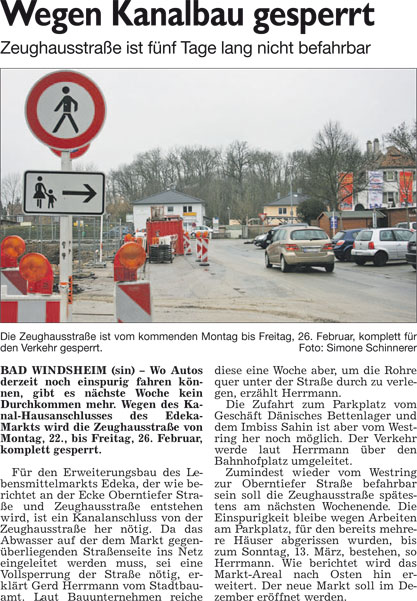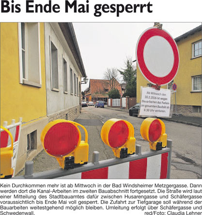 WZ 20./21. 2. 2016 "Ab Sommer wird gesprengt", "Wegen Kanalbau gesperrt"