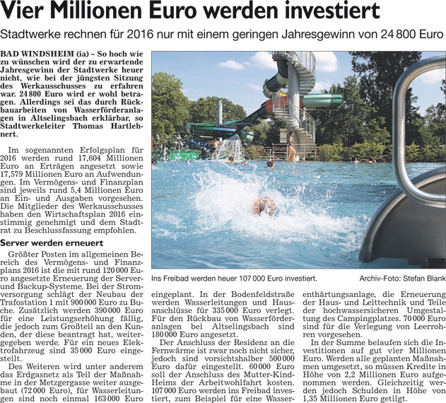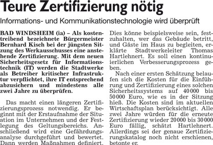 WZ 9. 2. 2016 "Vier Millionen Euro werden investiert", "Teure Zertifizierung nötig"