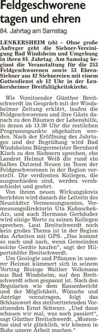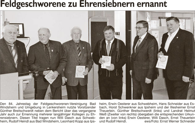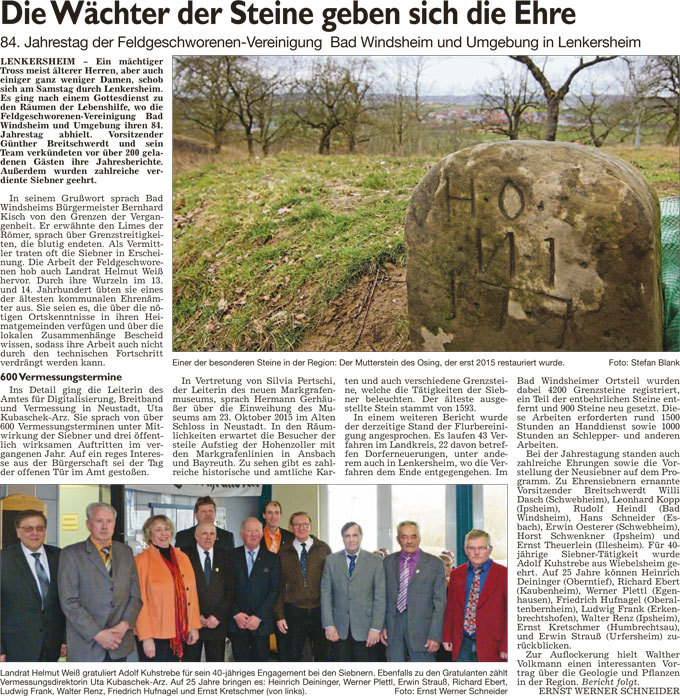 WZ 16. 2. 2016 "Feldgeschworene zu Ehrensiebnern benannt", "Von der Sandmulde auf die Wellenbahn"