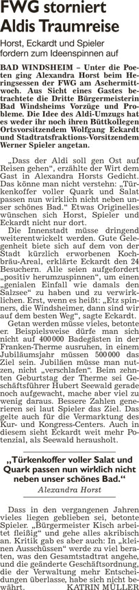 WZ 3. 2. 2016 "Geißendörfer bleibt Kommandant", "Im Straßenverkehr der Kurstadt ist einiges im Fluss"