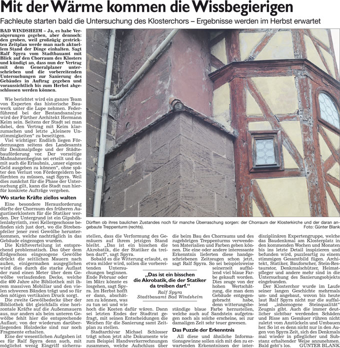 WZ 17. 2. 2016 "Mit der Wärme kommen die Wissbegierigen", "Platz machen für Sanierungsstraße"