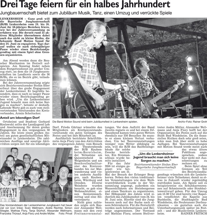 WZ 18. 2. 2016 "Pflichten verdrängen wichtige Projekte", "Drei Tage feiern für ein halbes Jahrhundert"