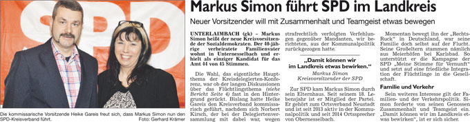 WZ 22. 2. 2016 "Eigners Einsatz für das fränkische Liedgut gewürdigt", "Markus Simon führt SPD im Landkreis"