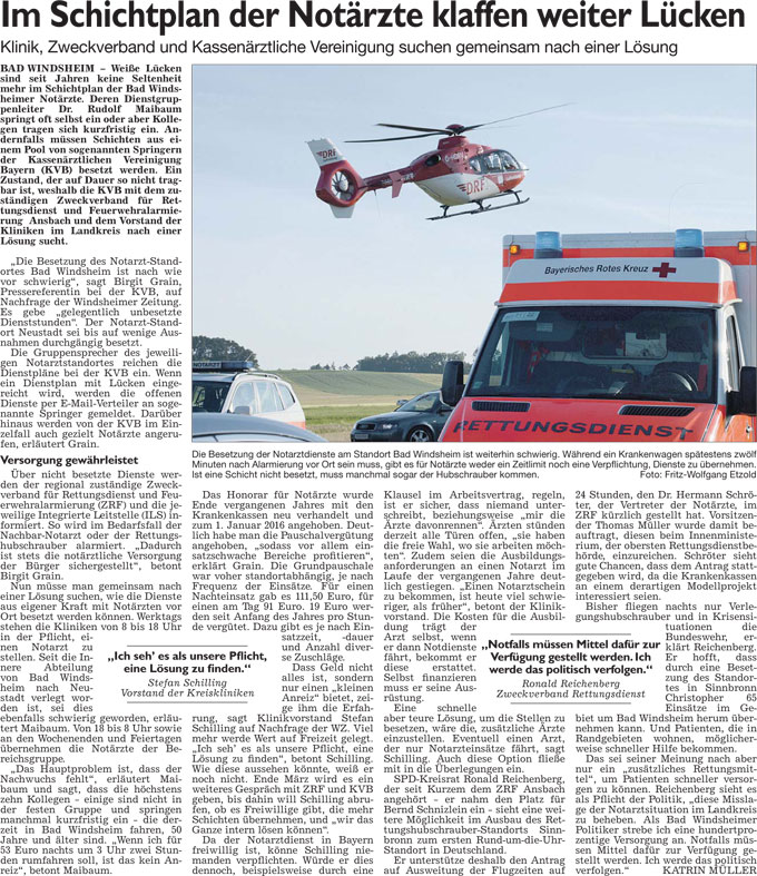 WZ 23. 2. 2016 "Im Schichtplan der Notärzte klaffen weiter Lücken", "Dorferneuerung kommt vor der Osingstraße"