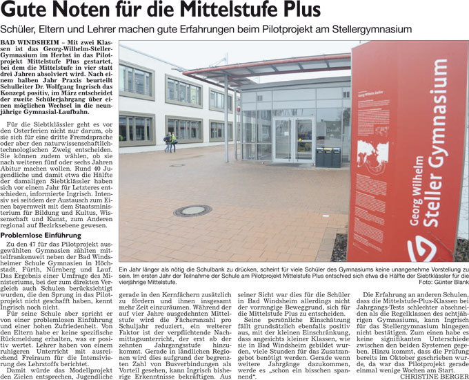 WZ 24. 2. 2016 "Gute Noten für die Mittelstufe Plus"