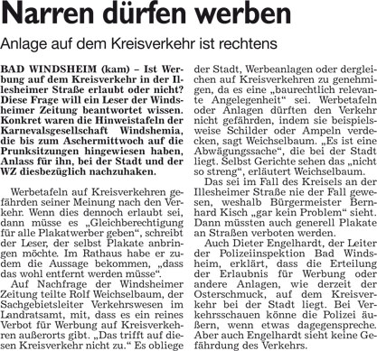 WZ 25. 2. 2016 "Narren dürfen werben", "Blick in die Kammer über der Stadt"