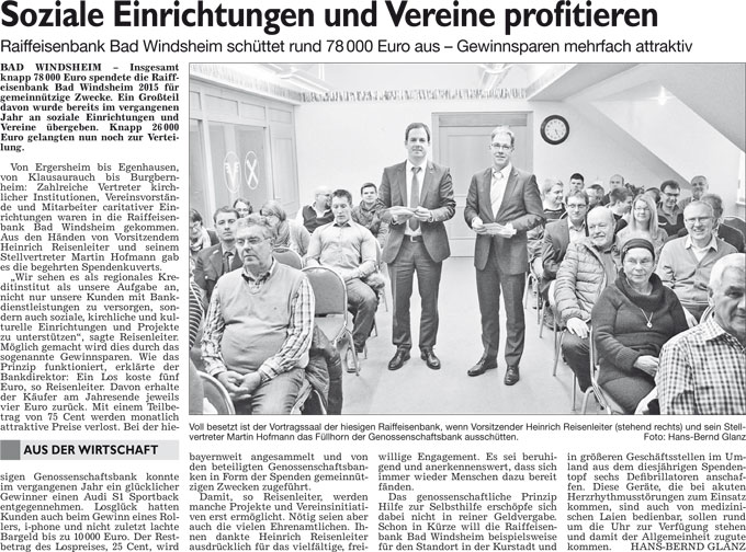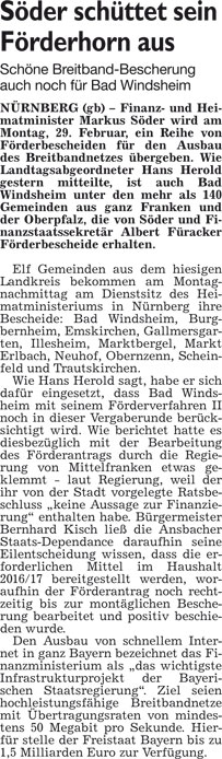 WZ 27./28. 2. 2016 "Standort stößt auf Zustimmung", "Söder schüttet sein Förderhorn aus", "Soziale Einrichtungen und Vereine profitieren"
