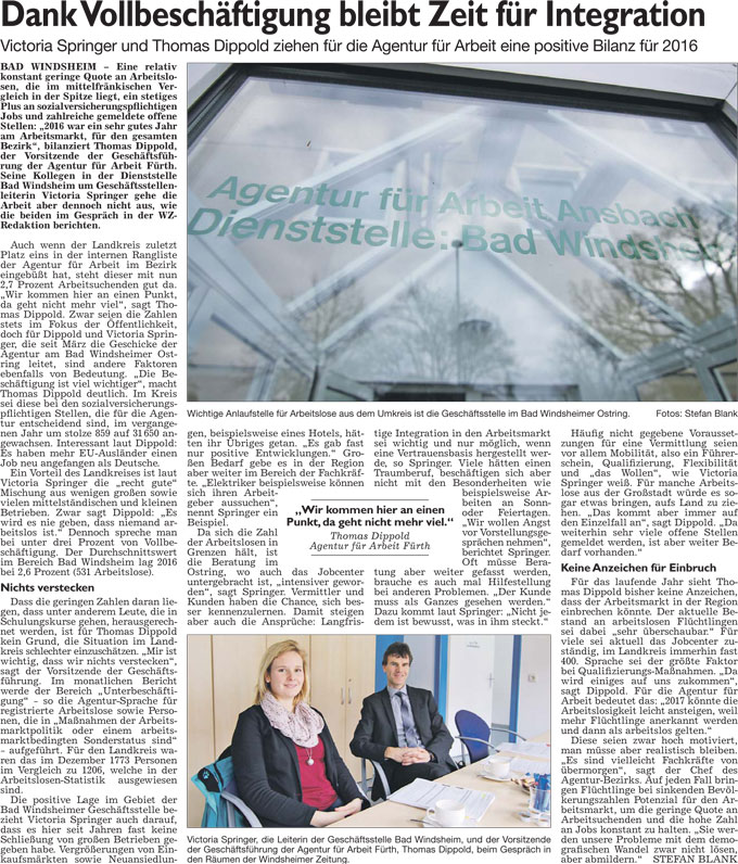 WZ 2. 2. 2017 "Dank Vollbeschäftigung bleibt Zeit für Integration"
