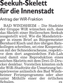WZ 7. 2. 2017 "Seekuh-Skelett für die Innenstadt"