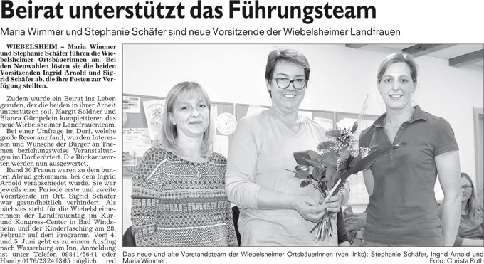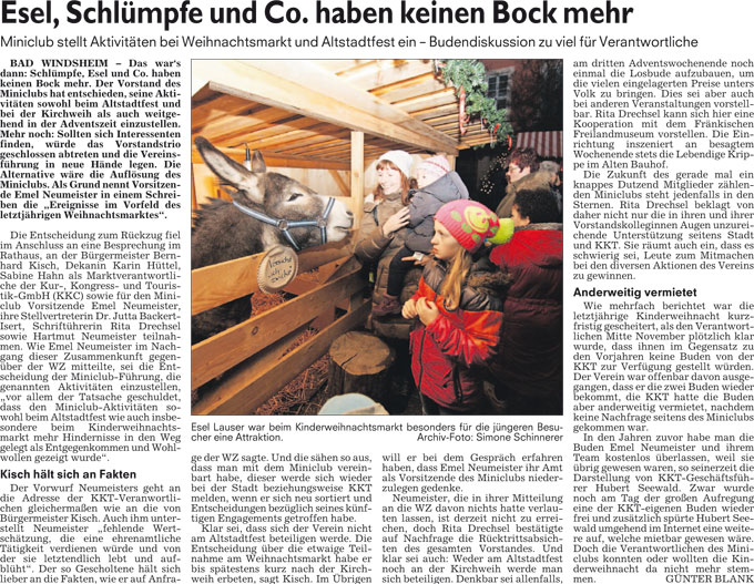 WZ 8. 2. 2017 "Beirat unterstützt das Führungsteam", "Esel, Schlümpfe und Co. haben keinen Bock mehr"
