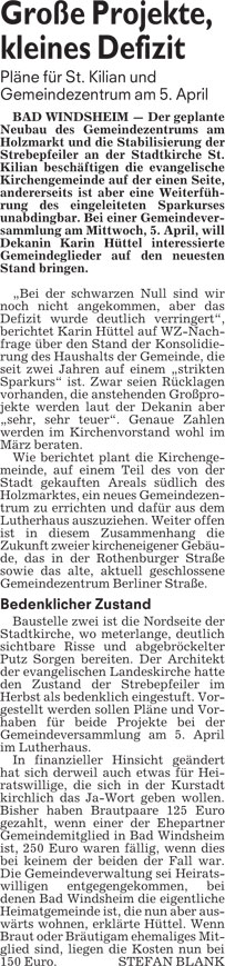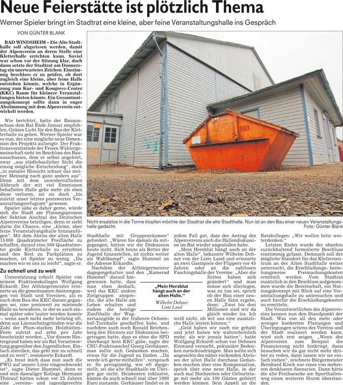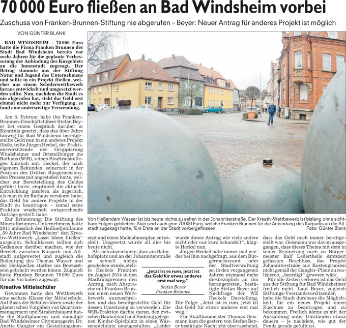 WZ 22. 2. 2017 "70.000 Euro fließen an Bad Windsheim vorbei"