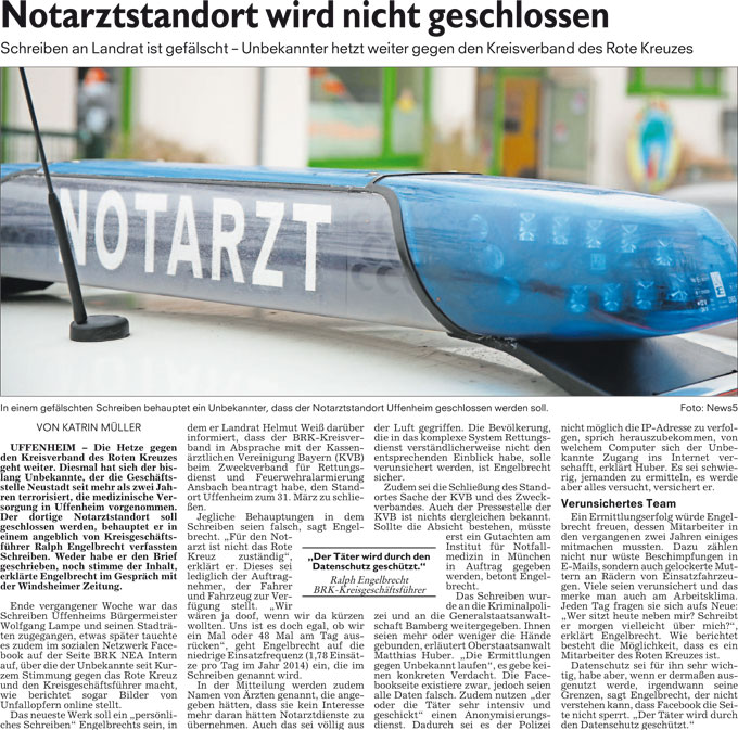 WZ 14. 2. 2017 "Notarztstandort wird nicht geschlossen"