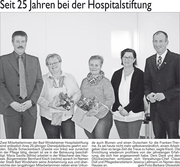 WZ 17. 2. 2017 "Seit 25 Jahren bei der Hospitalstiftung", "Die neue Tourist-Info wird angenommen"