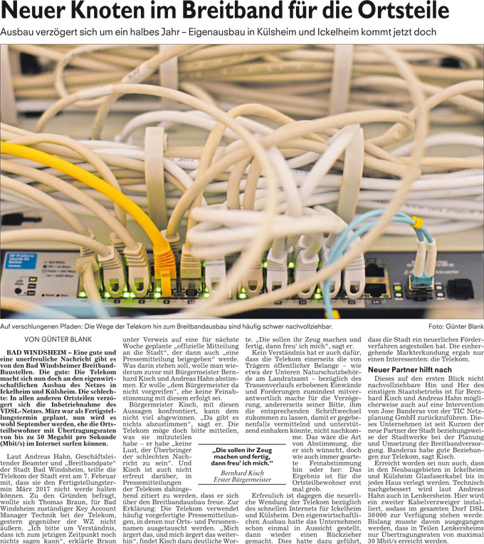 WZ 18./19. 2. 2017 "Neuer Knoten im Breitband für die Ortsteile", "Hubschrauber sind längst in Illesheim angekommen"
