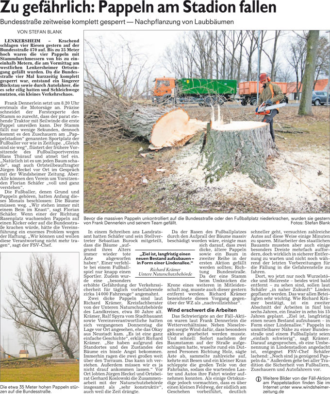 WZ 23. 2. 2017 "Zu gefährlich: Pappeln am Stadion fallen", "Mehr als drei Jahrzehnte als Feldgeschworene"
