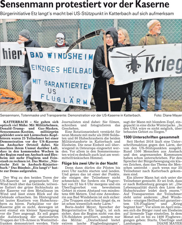 WZ 24. 2. 2017 "Sensenmann protestiert vor der Kaserne"