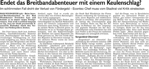 WZ 1./2. 2. 2014 "Raum zum Spielen, Eislaufen oder Feiern", "Endet das Breitbandabenteuer mit einem Keulenschlag?", "Nur die Bundespolitik kann für Veränderungen sorgen"