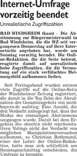 WZ 10. 2. 2014 "Internet-Umfrage vorzeitig beendet"