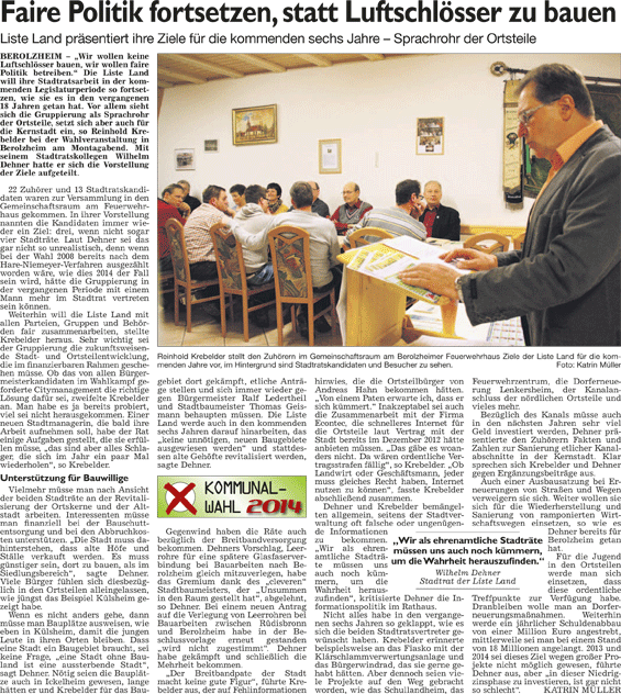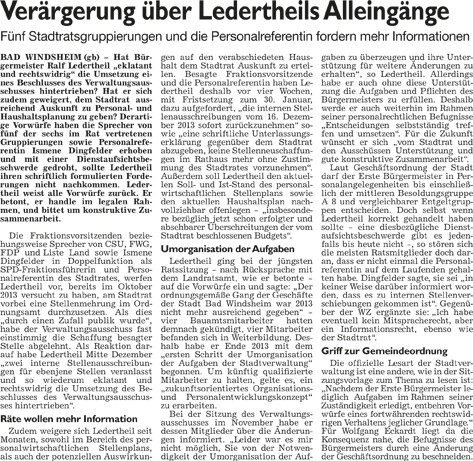 WZ 6. 2. 2014 "Verärgerung über Ledertheils Alleingänge", "Liste Land aktiv"
