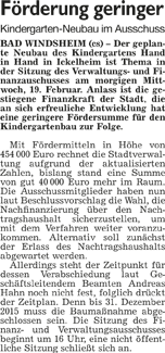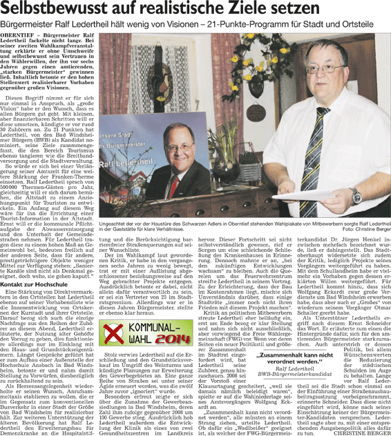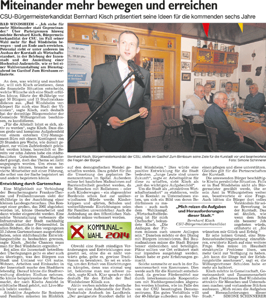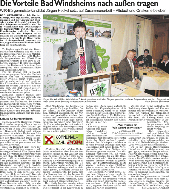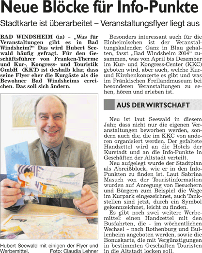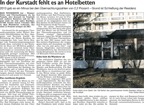 WZ 25. 2. 2014 "Die Vorteile Bad Windsheims nach außen tragen", "In der Kurstadt fehlt es an Hotelbetten", "Ergebnis erst heute"