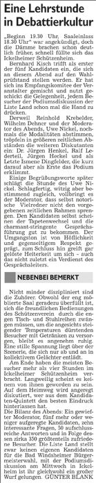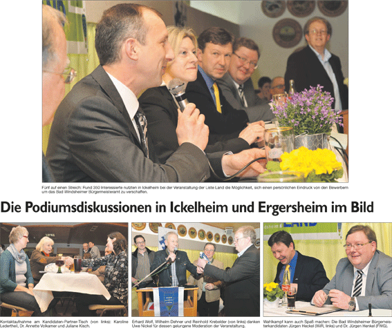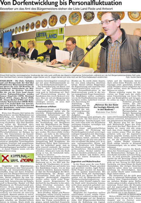 WZ 14. 2. 2014 "Von Dorfentwicklung bis Personalfluktuation", " Die Podiumsdiskussion in Ickelheim im Bild", "Eine Lehrstunde in Debattierkultur", "Heckenschneiden geht nun schneller"