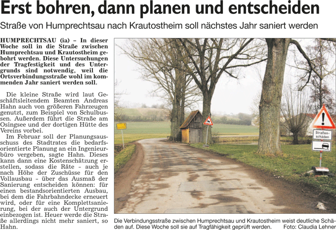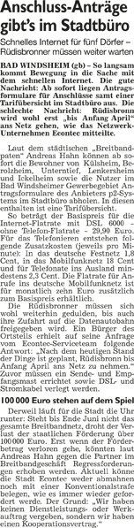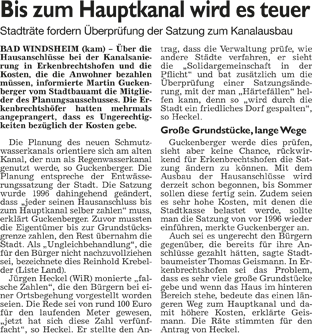 WZ 26. 2. 2014 "Der Kümmerer greift zu rhetorischen Kniffen", "Bis zum Hauptkanal wird es teuer", "Flugobjekt über der Westsiedlung", "Berechnung läuft"